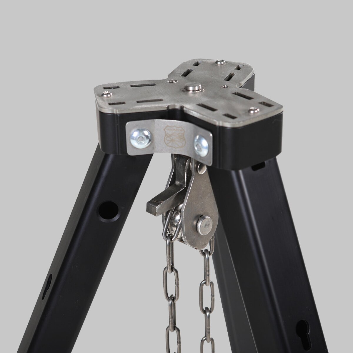 Das Dreibein steht auch auf unebenen Untergründen stabil. Dafür sorgen die individuell höhenverstellbaren Füße und die gummierten Abdeckkappen.